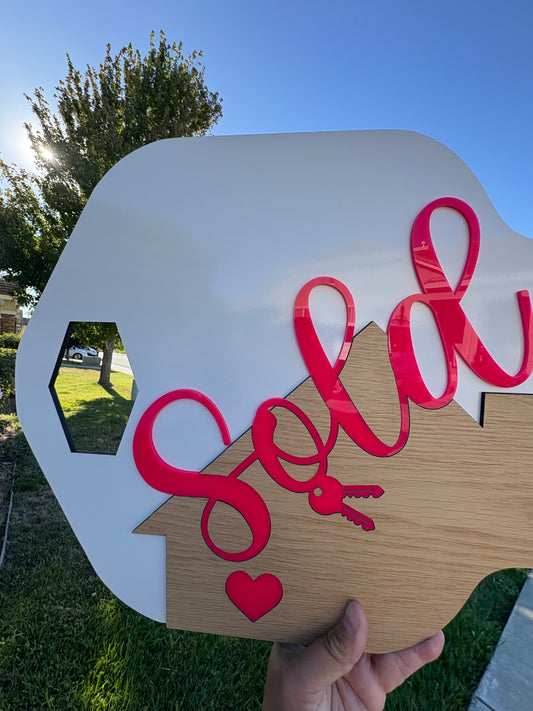 Custom Engraved Realtor Key Signs | Fully Customizable ( Wood backing & black & gold lettering)