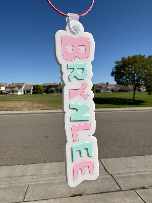 Custom Acrylic Laser-Cut Name Tags (White background & pink & blue letters)