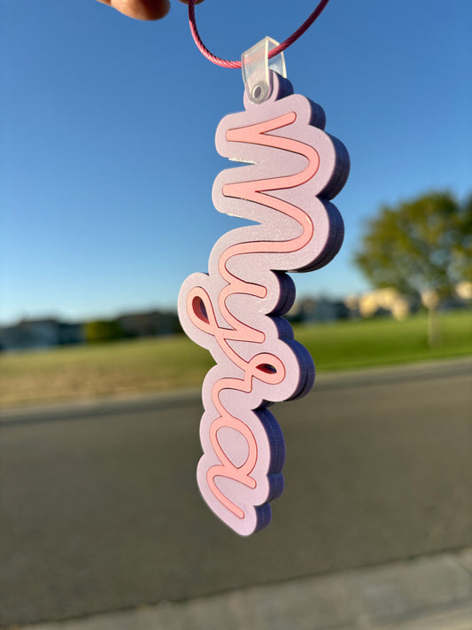 Custom Acrylic Laser-Cut Name Tags (Purple background & pink letters)